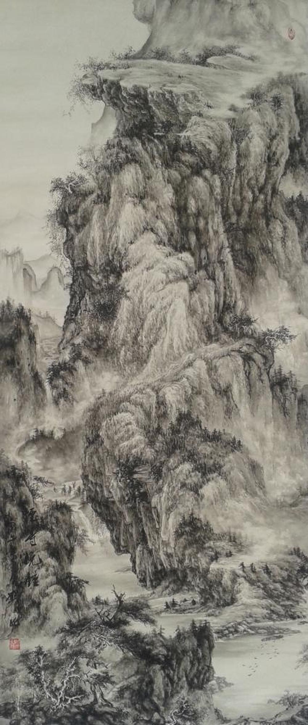6尺斗方,积墨,反映四川深幽的山水特点。
